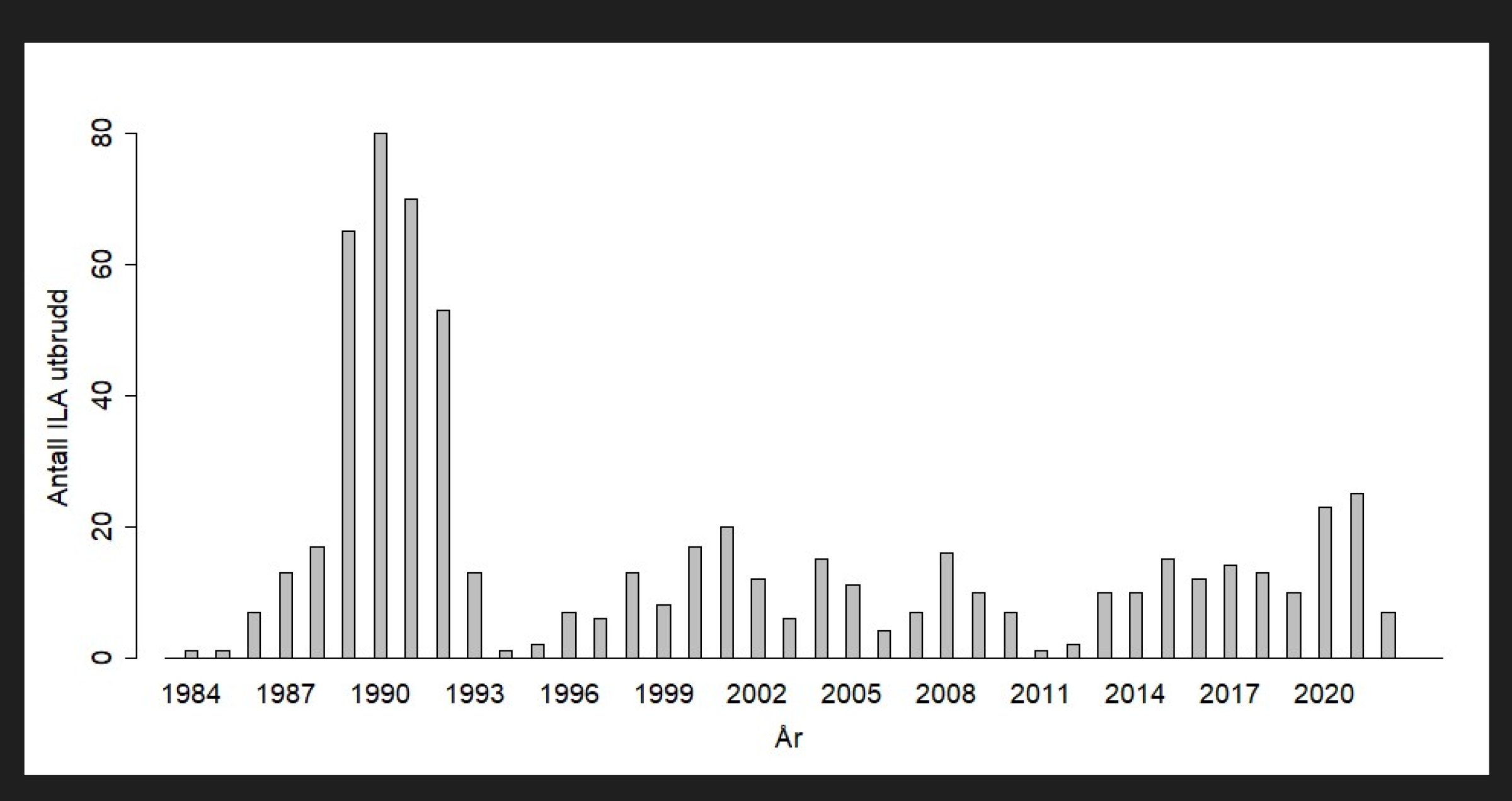 Både i 2020 og 2021 lå antall ILA-tilfeller godt over gjennomsnittet, som for perioden 1993-2020 var 10 tilfeller årlig.