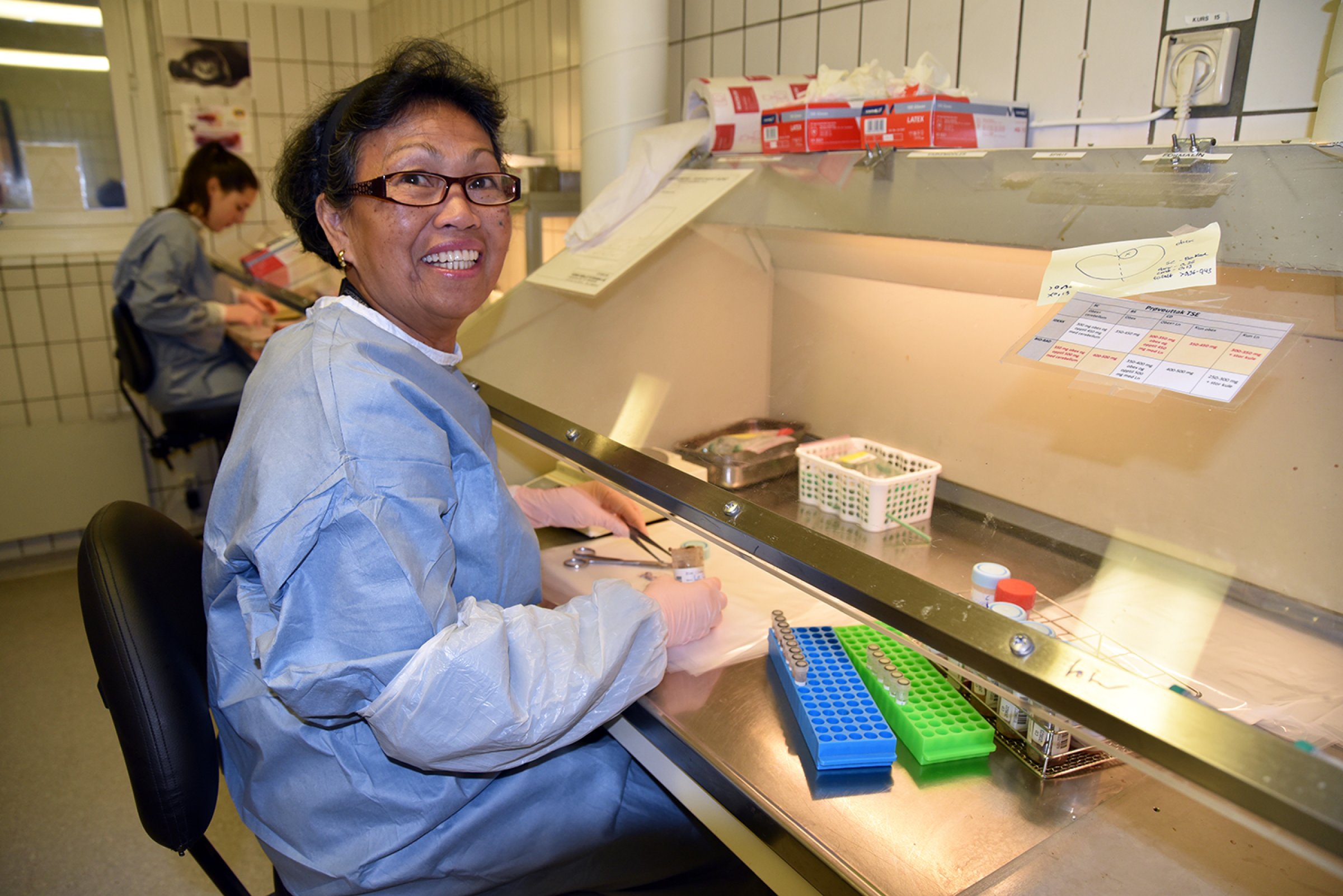 På den såkalte TSE-laben på Veterinærinstituttet analyseres det bare prøver for prionsykdommer. Det er streng adgangskontroll på laben og det er ikke hvem som helst som kan komme inn.