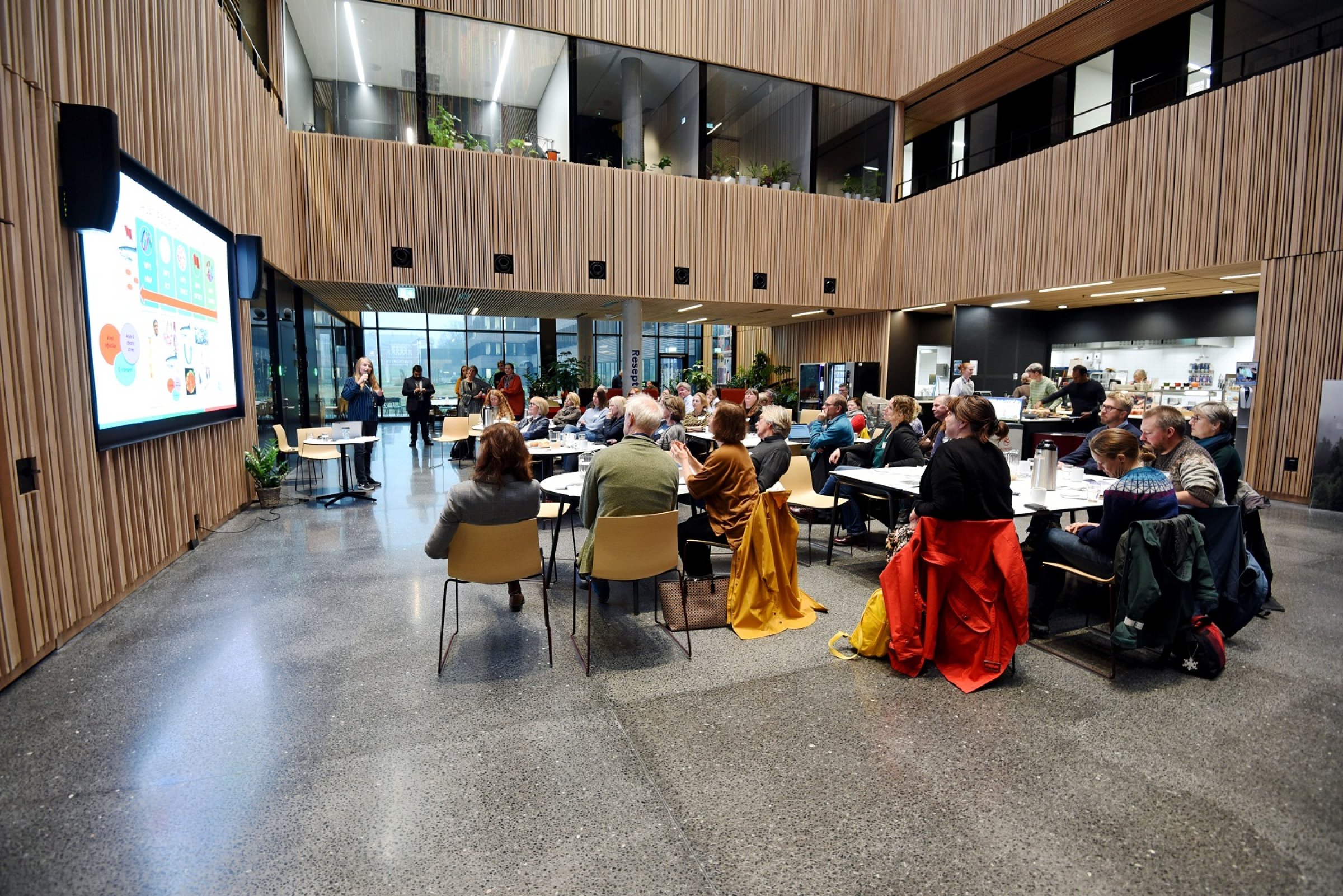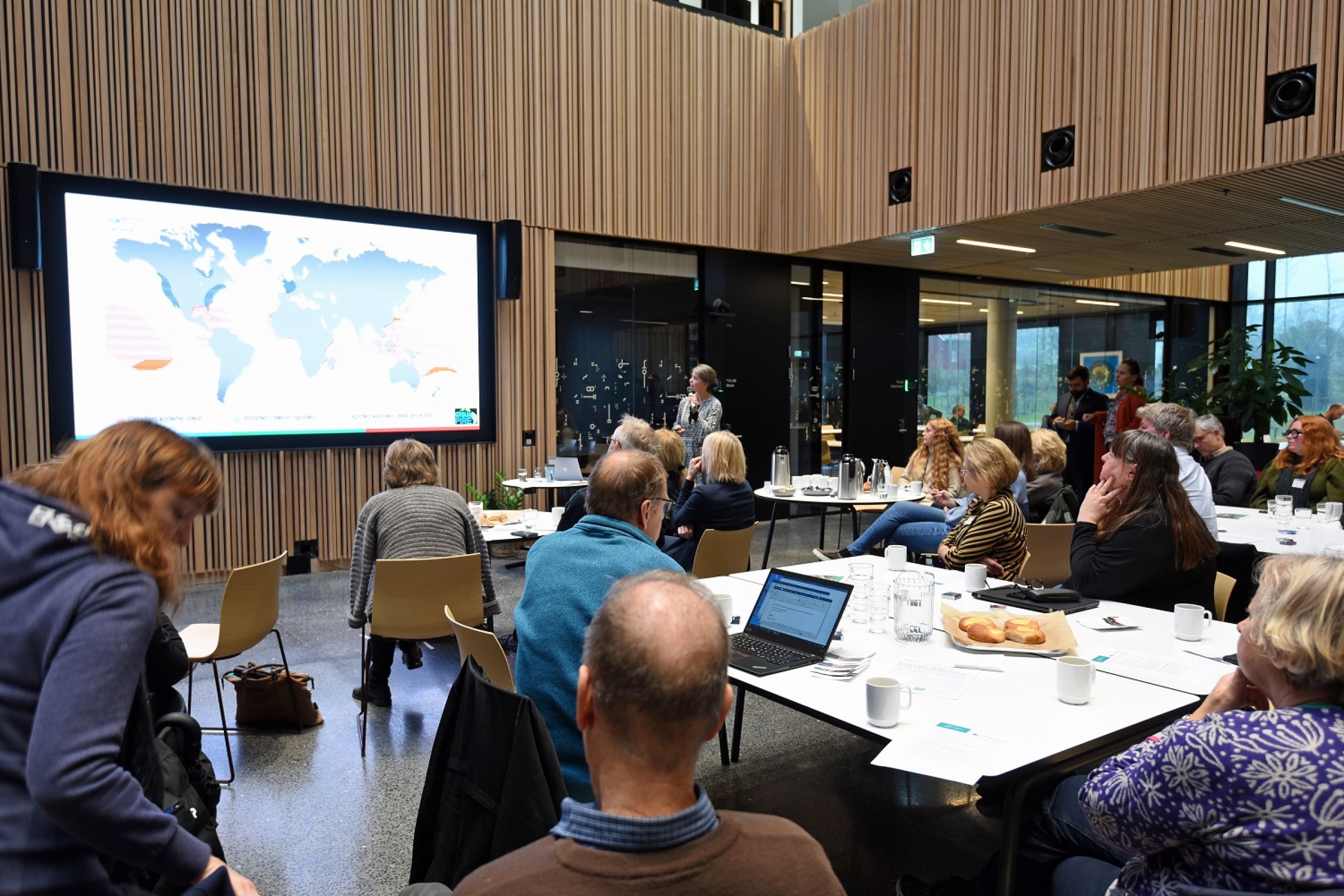 Det var 27 gjester fra hav- og polaravdelingen i Norges forskningsråd som hadde bedt om å få se nybygget og få innspill fra VI og NMBU. Det var et tett program med strategiske innspill og overblikk fra to dekaner og to direktører ved henholdsvis NMBU og VI samt fire forskere fra hver institusjon.