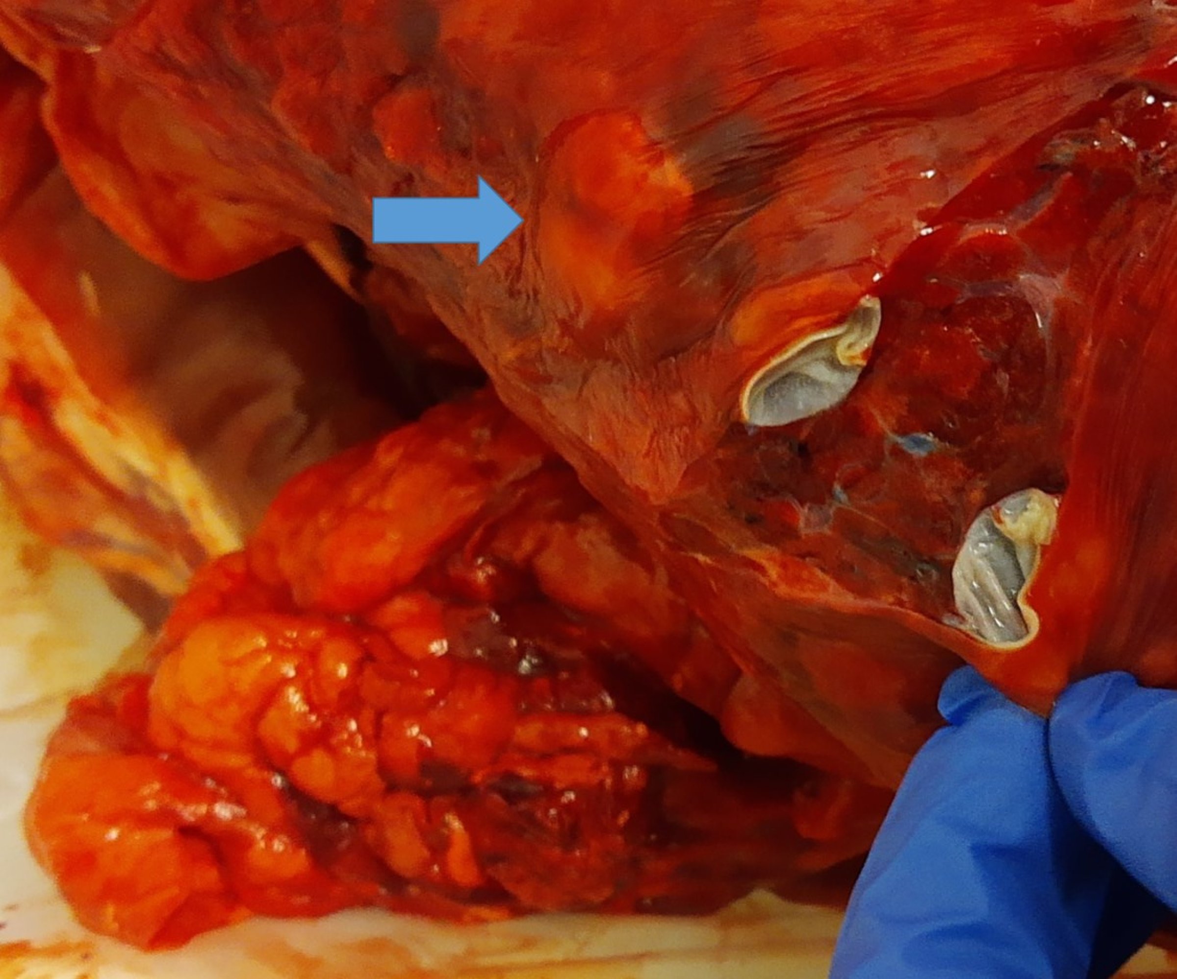 Prøvene ble tatt ut på et viltslakteri og sendt til Veterinærinstituttet for undersøkelse. Parasitten ble påvist hos en voksen elg i godt hold som hadde flere parasitter i lungene. Parasittblærene målte 1,5 – 3 cm i diameter og ble undersøkt histologisk og molekylært. Undersøkelsene viste at dette var blærer av parasitten Echinococcus canadensis (G10).